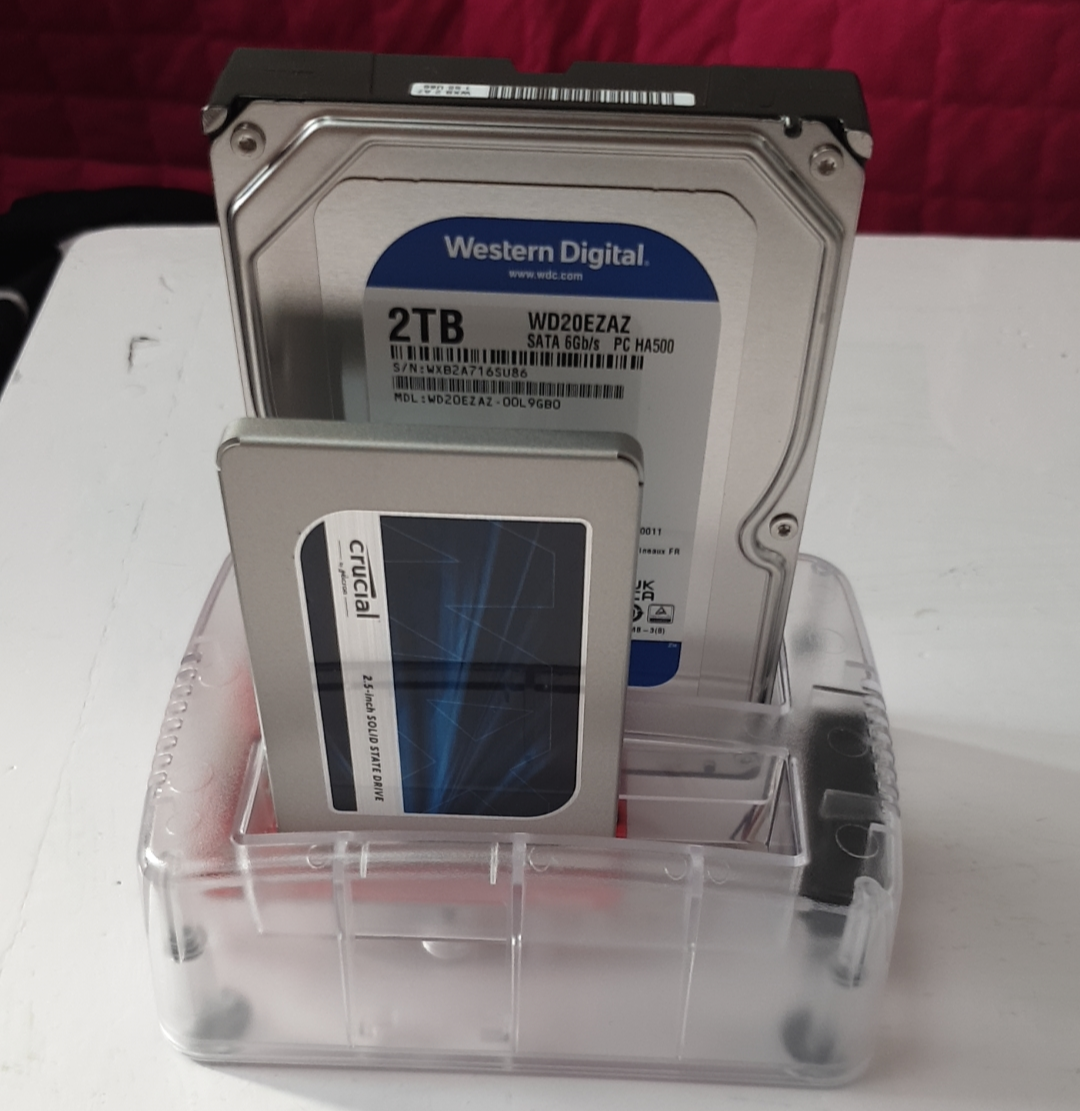 CPU는 Cortex-A55 1.8GHz 쿼드코어에 메모리는 DDR4 4GB 정도이다. 원래 N2+를 2개 사려다가 SATA 커넥터가 있어서 이것도 하나 샀다. SSD나 HDD를 직접 연결할 수 있다. USB 처럼 혹시 툭 쳐서 뽑히는 일은 없겠지 (?) 여기에 장착할 500GB짜리 SSD랑 2TB짜리 HDD도 사서 꽂아봤다.