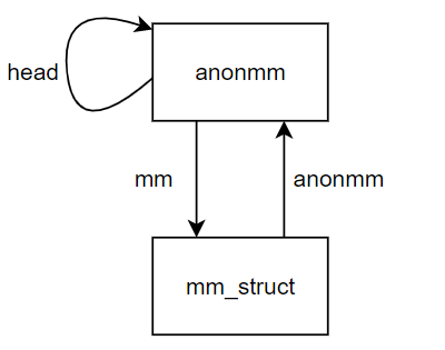 anonmm의 역할은 사실상 fork()로 연관되는 mm_struct를 연결 리스트로 이어주는 것이 전부다.