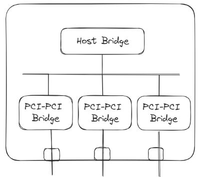 호스트 브리지의 버스는 항상 번호가 0이다. (이 사실이 나중에 Enumeration에서도 사용되니 참고하자.) 버스 0에는 브리지가 연결되어있는데, 이 브리지는 업스트림 버스인 버스 0을 다운스트림 버스인 버스 1과 연결하는 브리지다. 마찬가지로 버스 1에는 브리지가 연결되어있고, 이 브리지는 버스 1과 버스 2를 연결한다.