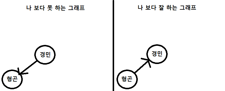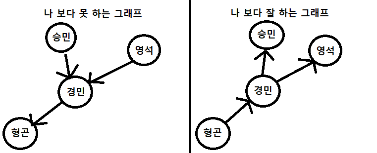 *나보다 잘 하는 그래프던, 못 하는 그래프던 간에 승민이와 영석이는 연결되어있지 않으므로 고려하지 않는다.