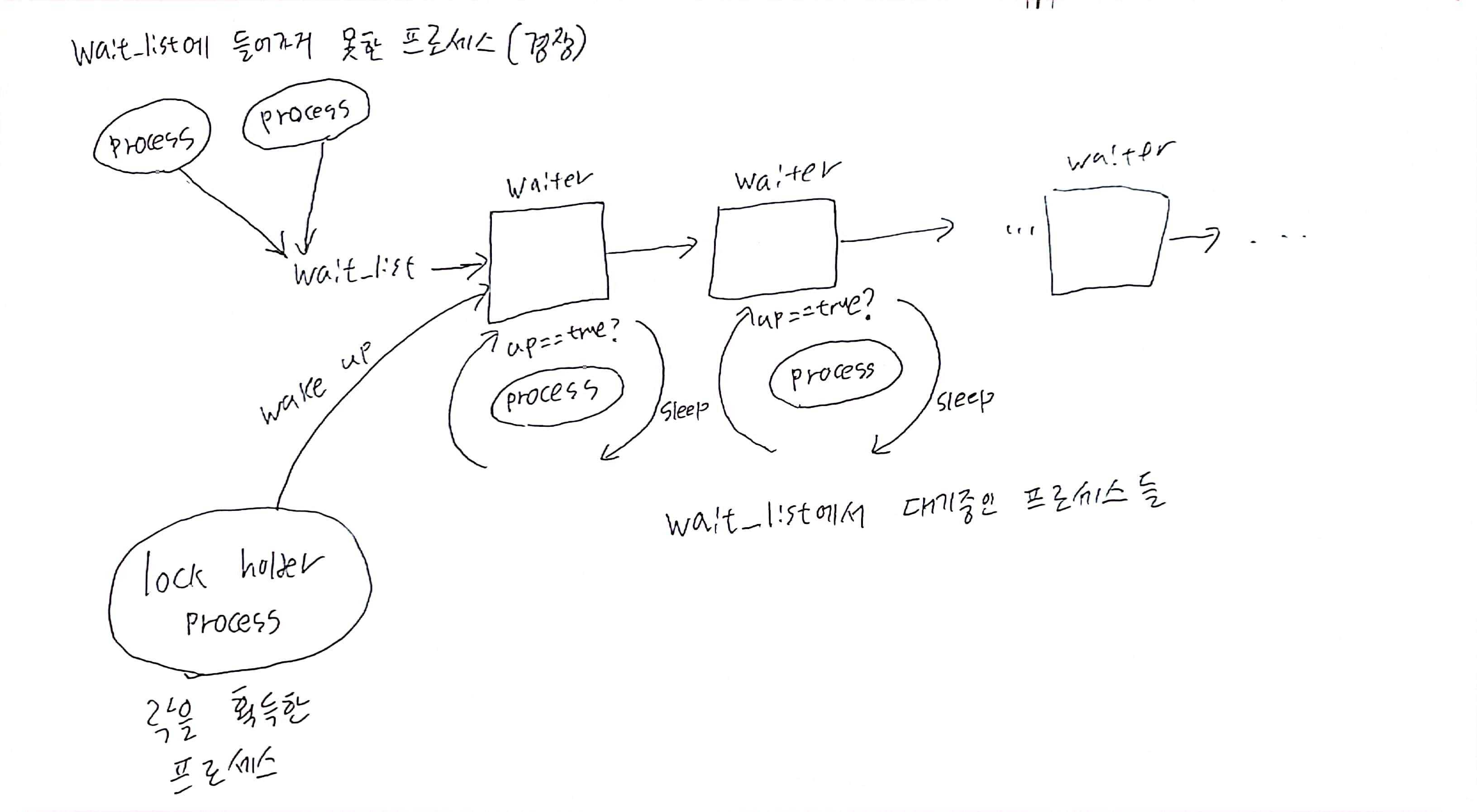 3. 깨어난다. 락을 획득했는가? 획득했다면 탈출한다. 아니면 다시 1번부터 반복